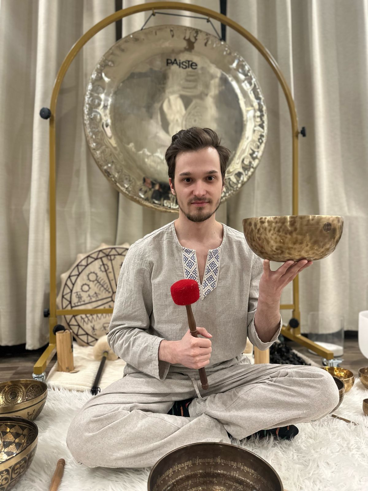 - Инструменты звукотерапии: Гонги и барабаны, погружение в мир вибраций и исцеления